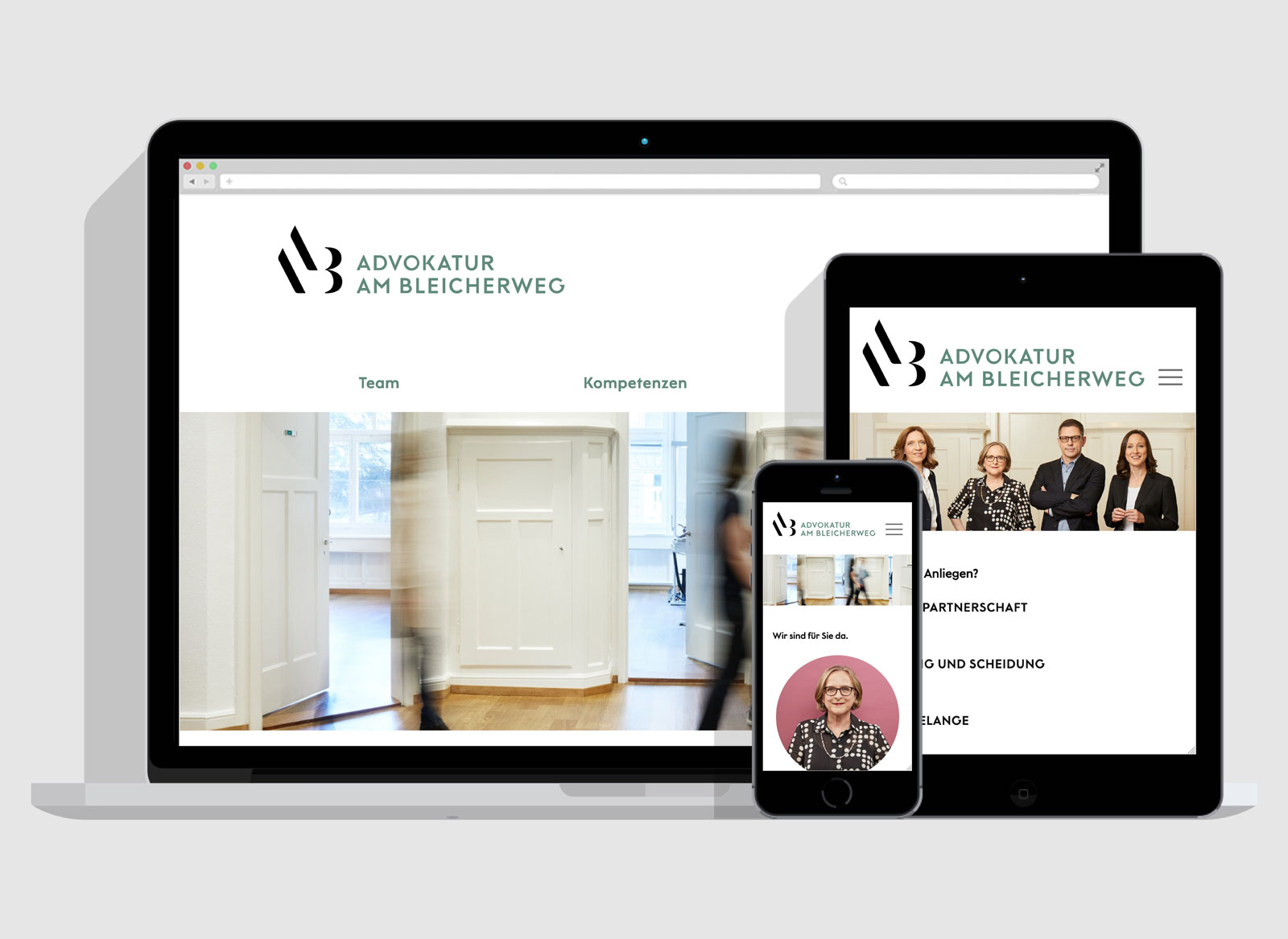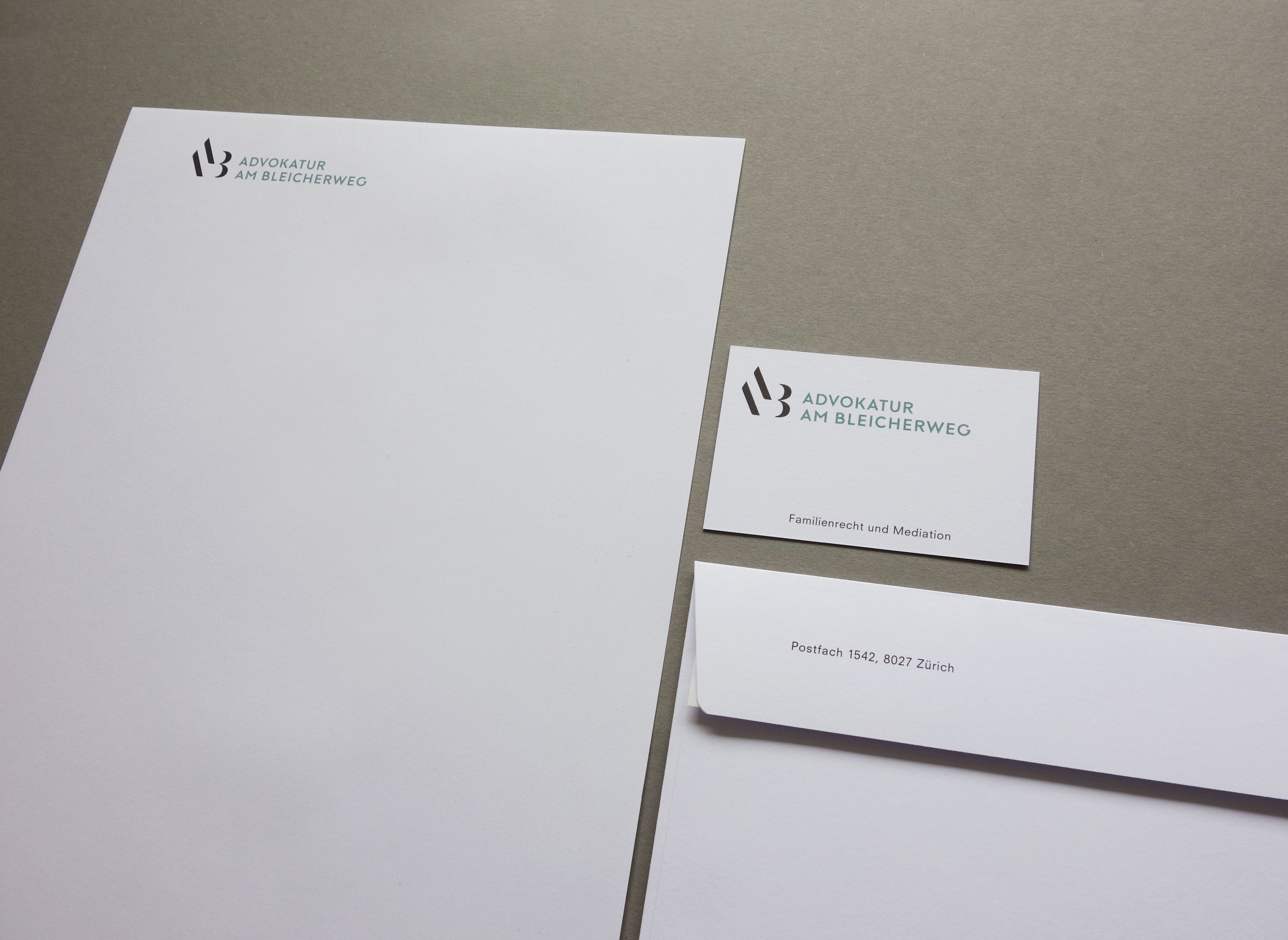 Für unseren Kunden Advokatur am Bleicherweg haben wir das Logo, die Briefschaft und den Webauftritt erarbeitet. Die Anfangsbuchstaben des Namens erinnern in der Verdoppelung und der gezielt eingesetzten Reduktion an das Zeichen des Paragraphen. Für den geplanten Webauftritt ist vorerst eine digitale Visitenkarte im Einsatz.