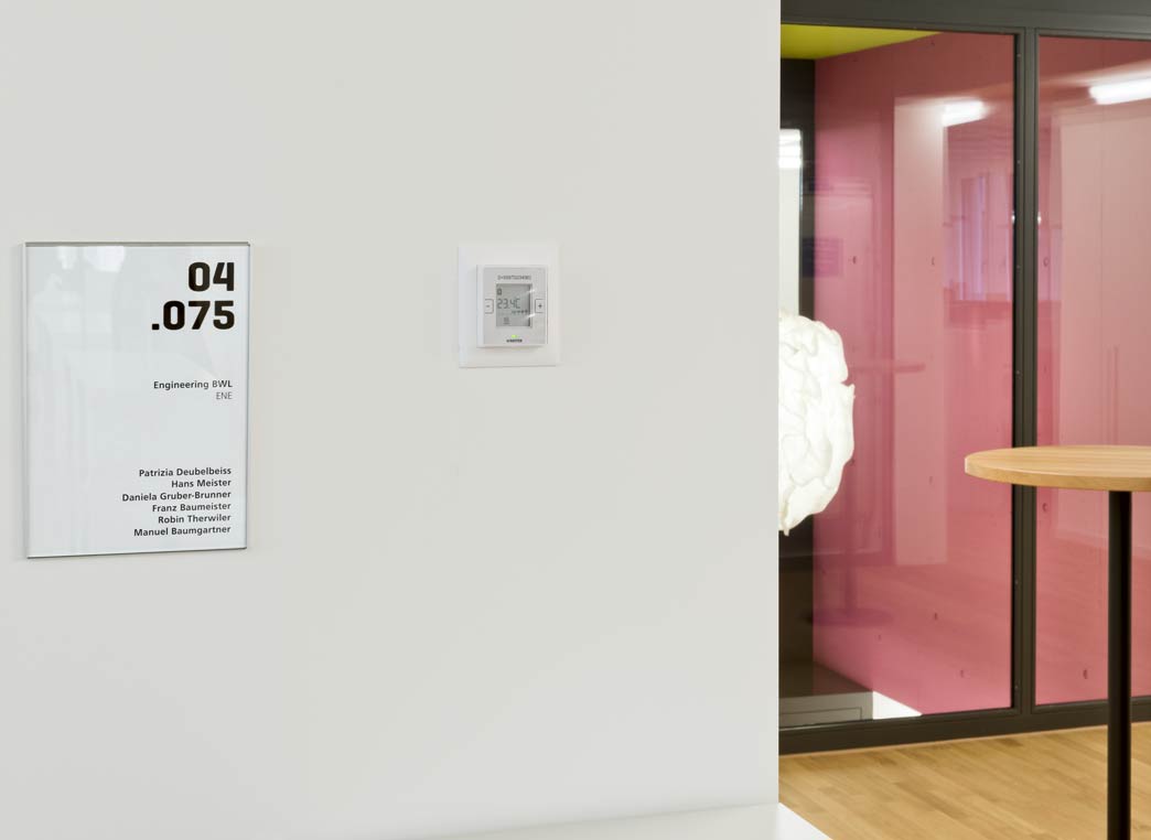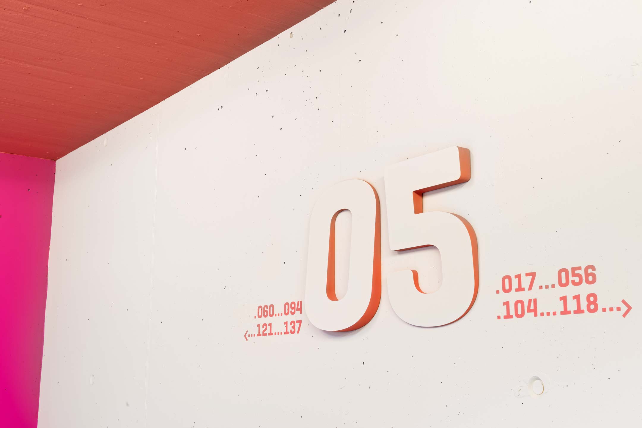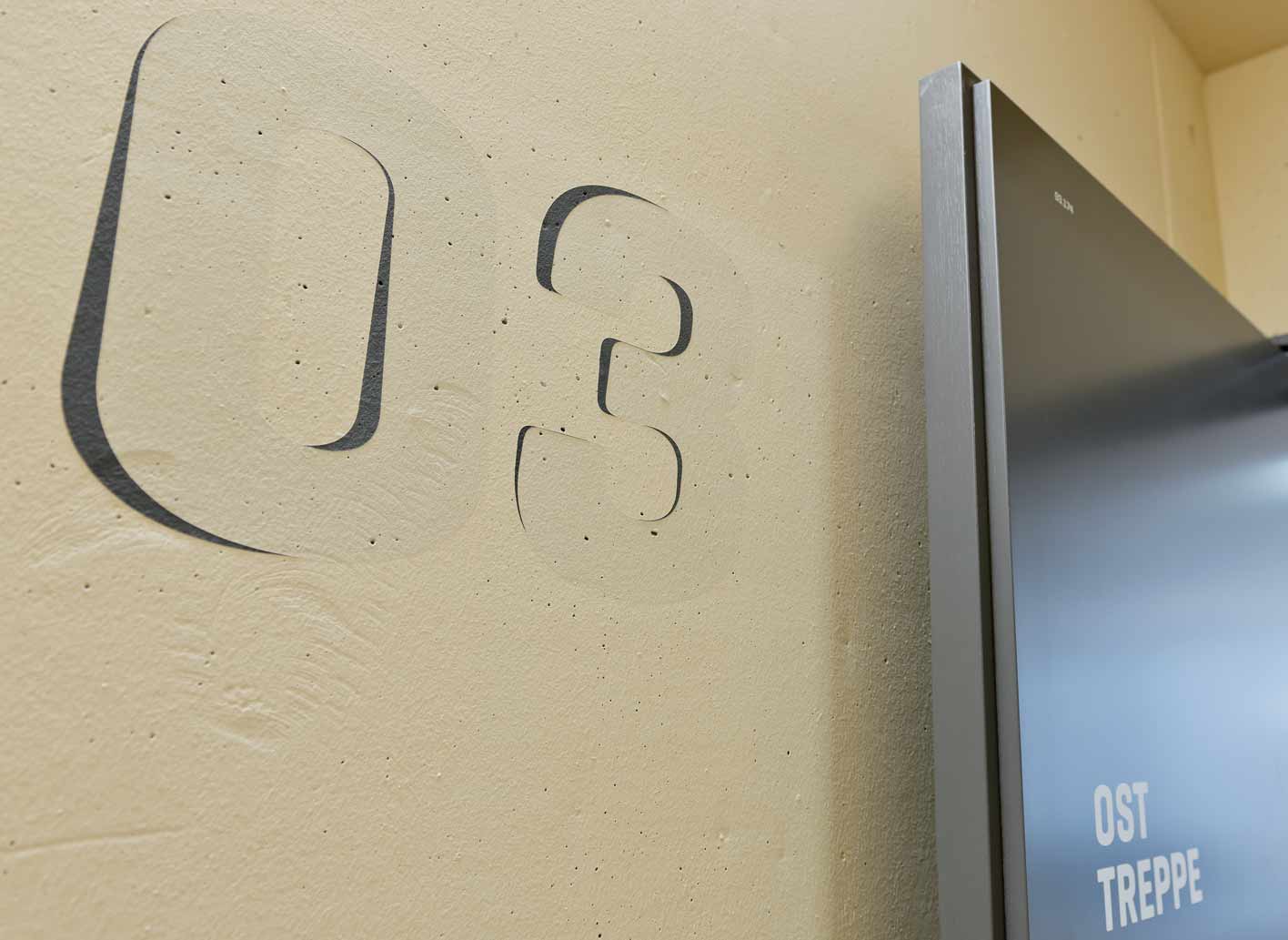 Im Auftrag des BBL haben wir für das neue Verwaltungsgebäude des Bundesamts für Informatik und Telekommunikation (BIT) in Zollikofen die gesamte Signaletik konzipiert, geplant und realisiert. Das Konzept basiert dabei auf der Idee des Flechtwerks in der Fassade mit ihren abwechselnd geneigten Fassadenstützen. So fügt sich die Signaletik in die architektonische Umgebung ein und setzt doch einige punktuelle Akzente an den wichtigsten Stellen. Architektur: Liechti Graf Zumsteg, Brugg.