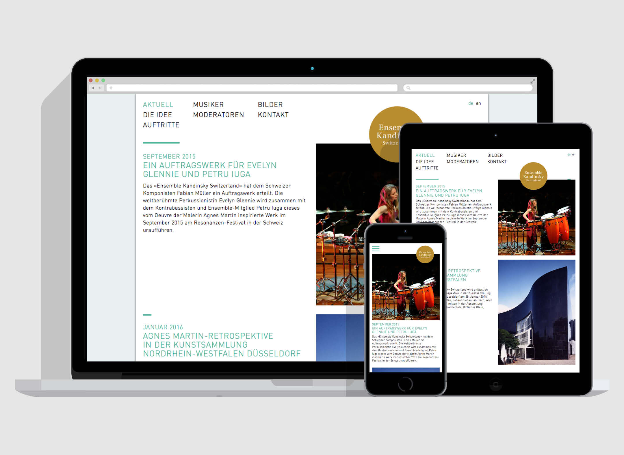Das Ensemble Kandinsky stellt in seinen Auftritten in renommierten Kunstinstitutionen Werke der klassischen Musik in einen Dialog mit Bildern der klassischen Moderne. Driven hat für das neu gegründete Ensemble eine frische, moderne Website gestaltet, die die Musiker und ihre Projekte mit stimmungsvollen Bildern in Szene setzt.