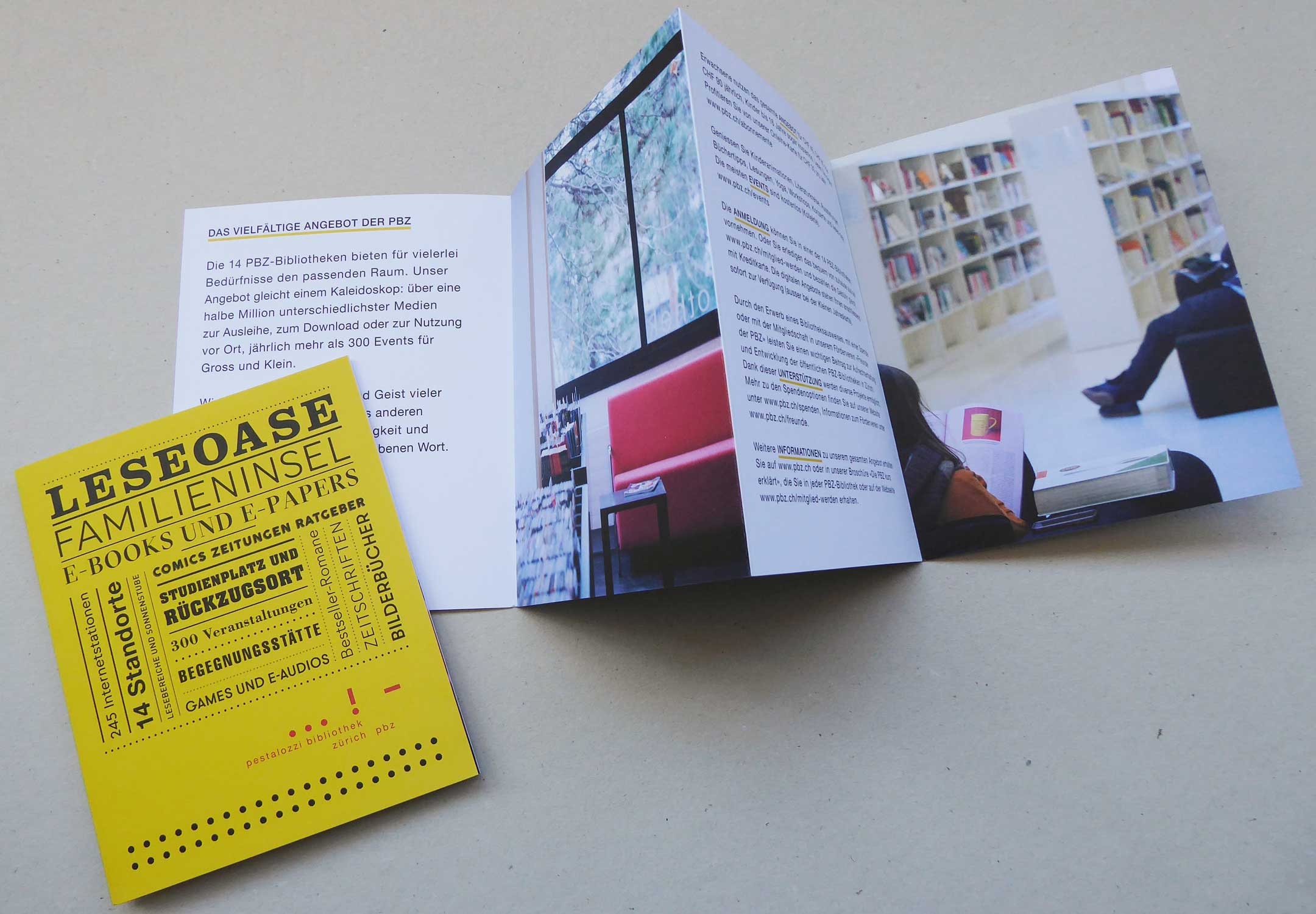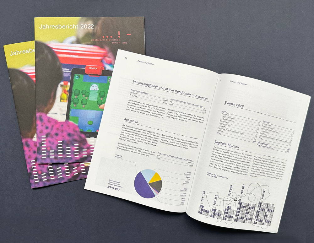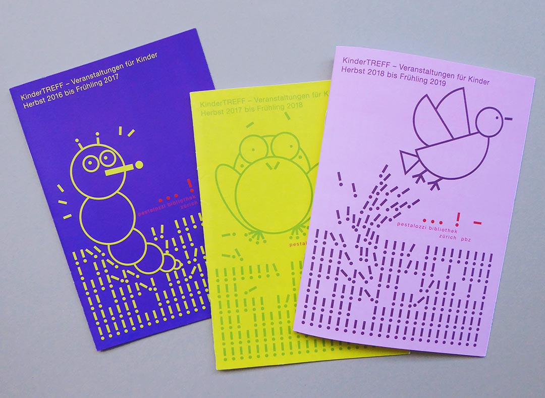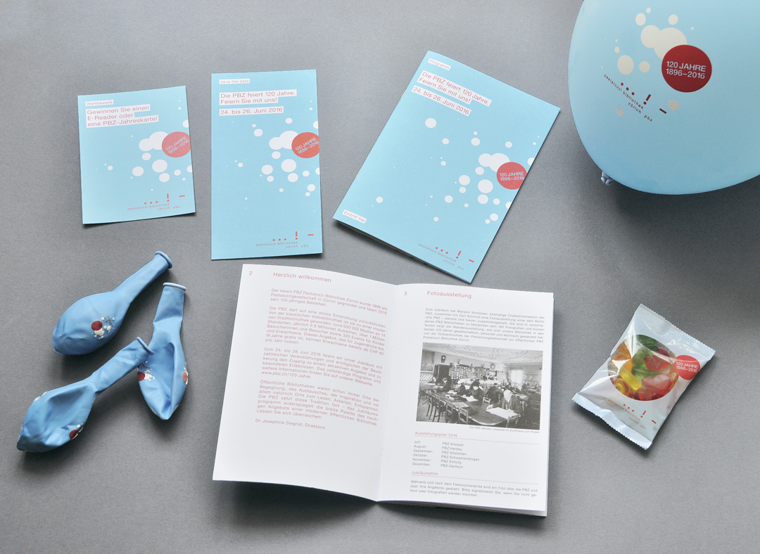Von der PBZ Pestalozzi-Bibliothek Zürich wurden wir 2011 mit dem Redesign des Coporate Designs beauftragt. Ausgehend vom bestehenden und gut etablierten Logo haben wir eine grafische Bildwelt entwickelt, die mit den Elementen des Logos – Punkt, Strich und Ausrufezeichen – spielt. Daraus entstanden ist ein farbenfroher, lebendiger Auftritt, der die Ausrichtung der PBZ widerspiegelt und ihre breite Zielgruppe ansprechen soll.