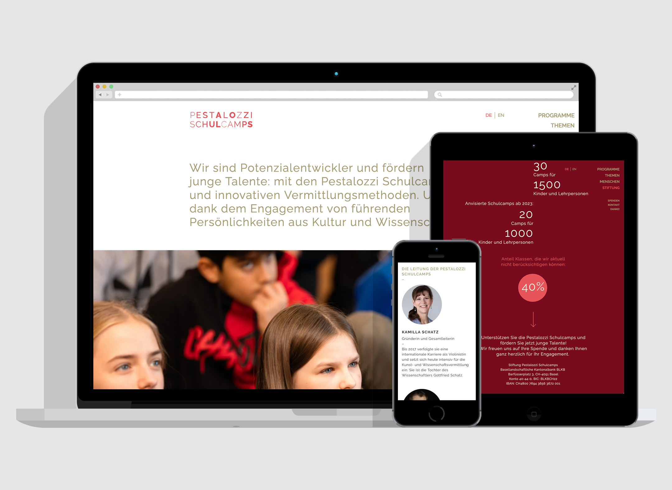 Das von Kamilla Schatz gegründete Bildungsprogramm «Pestalozzi Schulcamps» ermöglicht es PrimarschülerInnen, sich während einer intensiven Projektwoche vertieft mit Kunst und wissenschaftlichen Themen auseinanderzusetzen. Der Fokus liegt dabei auf Kindern aus bildungsfernen Migrationsquartieren. Ein tolles Angebot, zu dem wir mit neuem Corporate Design und Onlineauftritt hoffentlich etwas beitragen können.