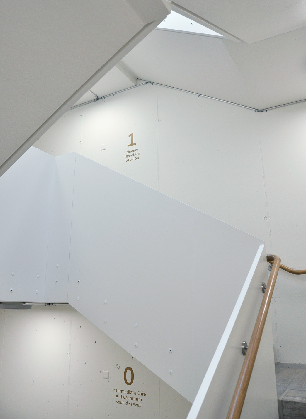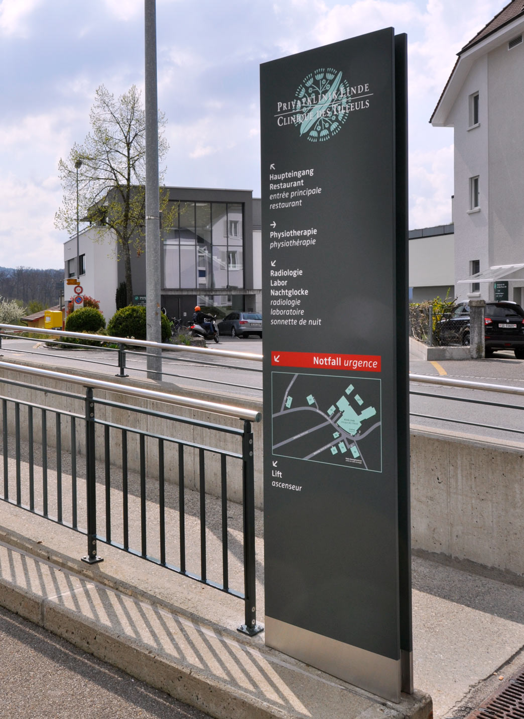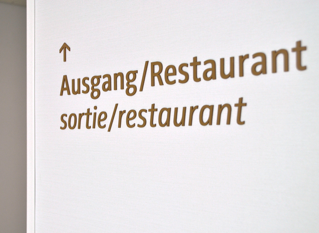 Für den Nordanbau der Privatklinik Linde in Biel wurden wir mit der Planung und Realisierung der zweisprachigen Signaletik beauftragt. Passend zur eleganten Atmosphäre haben wir eine dezente Signaletik entwickelt, die auch den Anforderungen an ein Leitsystem in einem Spital punkto Sicht- und Lesbarkeit Rechnung trägt. In den verschiedenen Abteilungen wie Physiotherapie, Intermediate Care sowie den Privatzimmern wurden – entsprechend der architektonischen Umgebung – verschiedene Materialien eingesetzt. Architektur: Itten+Brechbühl AG.