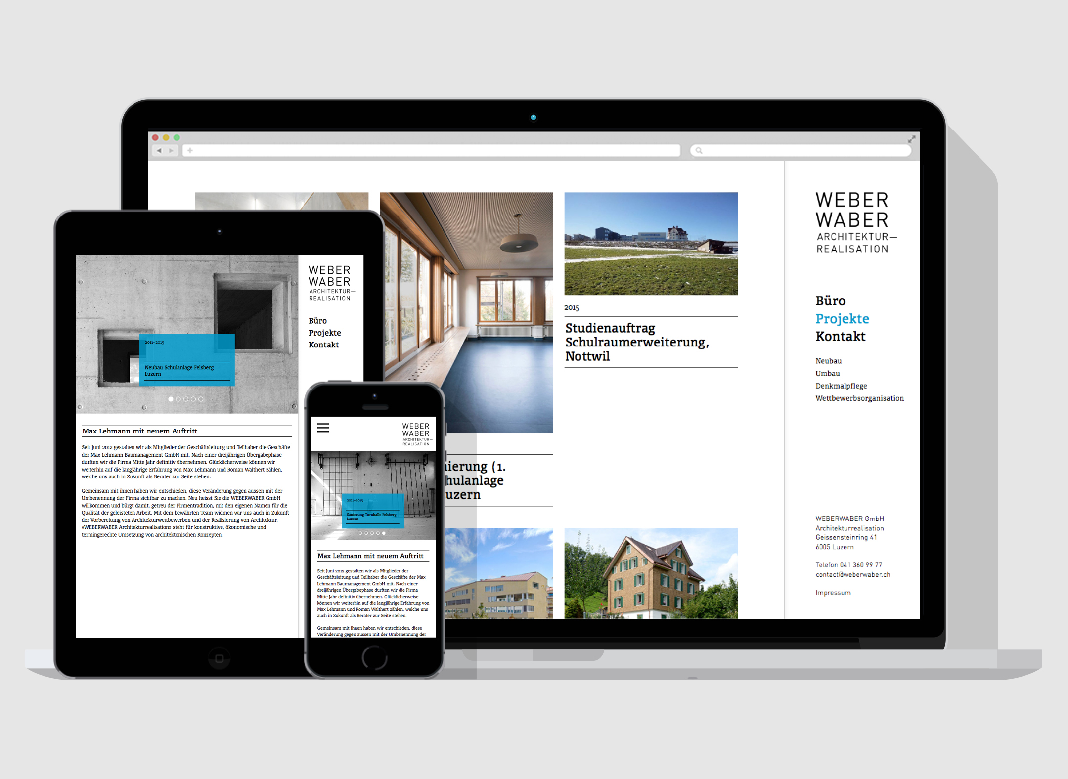 Christoph Weber und Stefan Waber übernehmen nach einer mehrjährigen Übergabephase die renommierte Max Lehmann Baumanagement GmbH. In enger Zusammenarbeit mit allen Parteien haben wir den neuen Namen, das Corporate Design und die Gestaltung von sämtlichen Kommunikationsmitteln entwickelt und realisiert. Das dezente und doch prägnante Logo, die frischen, klaren Farben und die schwarzweissen Bilder vom Bauprozess visualisieren dabei die Arbeitsweise und Philosophie von WeberWaber, die sich in der Realisation von Architekturkonzepten spezialisiert haben.
